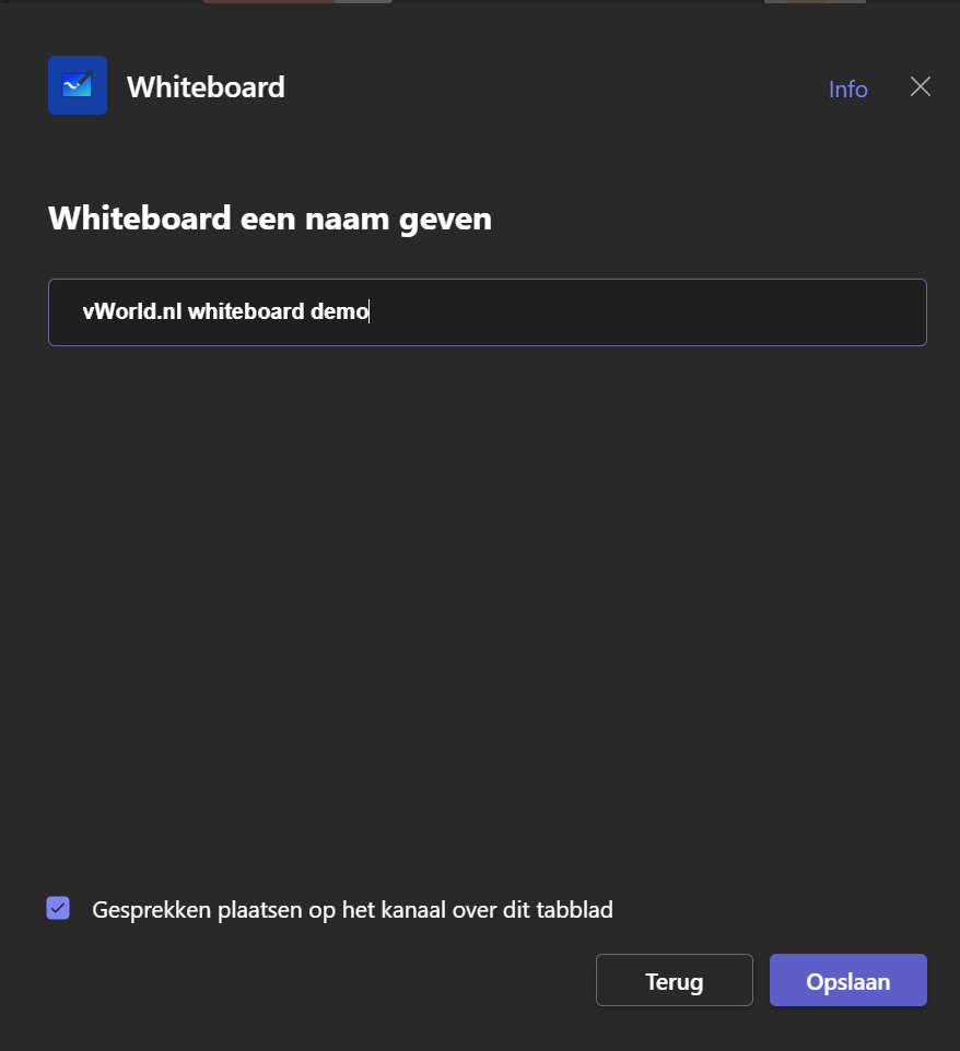 Let’s create a whiteboard on a Teams channel for demo purposes.